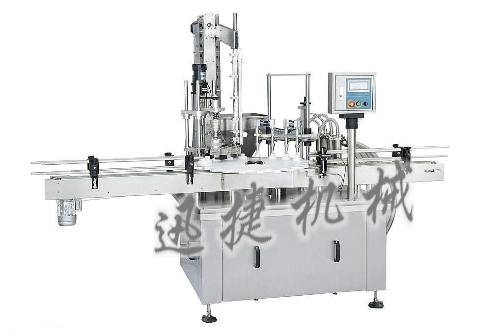 自動灌裝機加蓋機構(gòu)的主要作用是使蓋子在到達焊接系統(tǒng)之前,實現(xiàn)對預(yù)送機構(gòu)傳送塑料蓋子的自動化理蓋、自動化排隊和自動化輸出,使輸出的塑料蓋子處于正確的焊接位置,輔助完成加蓋的整個過程。 其原理是:加蓋機構(gòu)采用蝸桿蝸輪傳動和電動機無級調(diào)速來改變蝸桿輸出的速度,因自動灌裝機蝸輪上的軸與理蓋機構(gòu)底部的盛蓋器通過螺紋聯(lián)接,所以其盛蓋器隨主軸而轉(zhuǎn)動,由于盛蓋器內(nèi)部放有塑料蓋子,在轉(zhuǎn)動的同時由于圓周力的作用使塑料蓋子往四周分散,在理蓋器底部的紗織底盤沿著噴氣口的方向,將這些蓋子移到繞在理蓋器外圈的滑槽上。